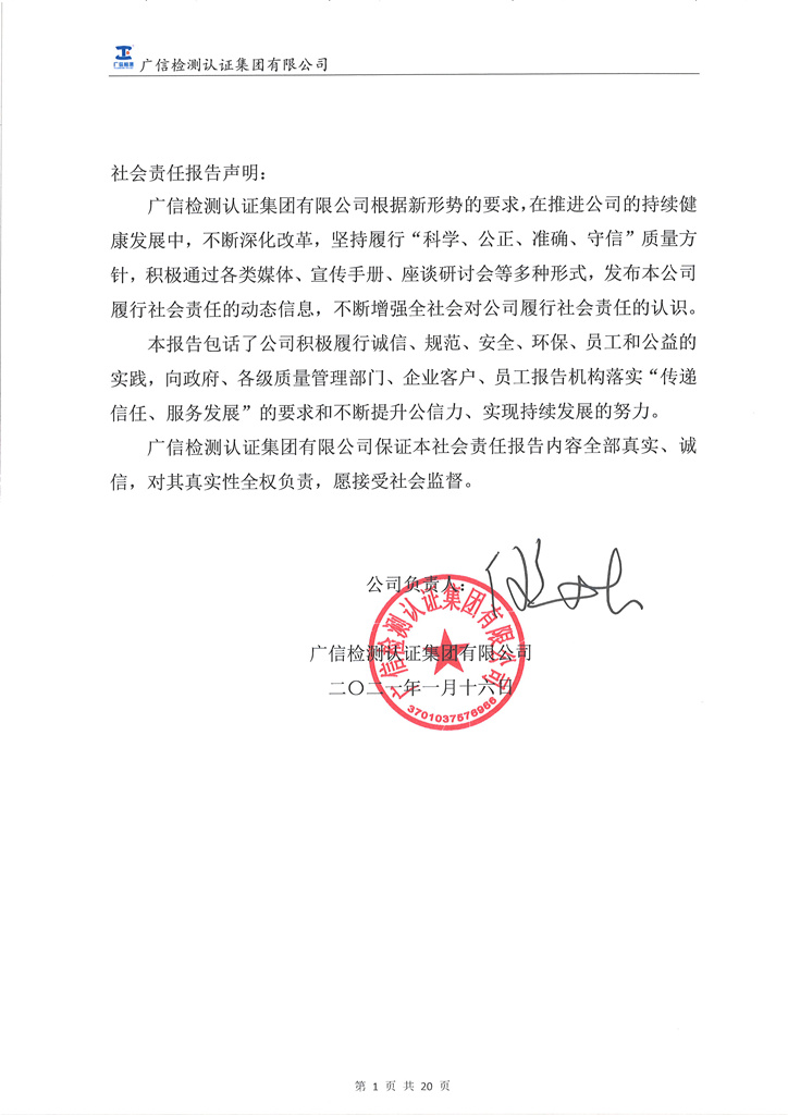 • 履行社会责任自我声明