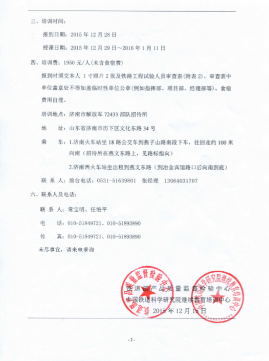关于近期拟在济南举办铁路试验人员培训班意向的通知