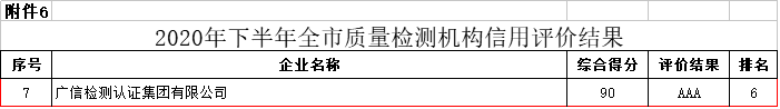 近日,济南市住房和城乡建设局公布了2020年下半年全市建筑市场主体信用评价结果,广信检测认证集团荣获2020年下半年全市质量检测机构信用评价获得AAA荣誉称号。同时,济南市建设工程质量与安全生产协会公布了2020年度济南市建设工程质量检测机构信用评价结果,广信检测认证集团荣获2020年度济南市建设工程质量检测机构信用评价A级检测单位。