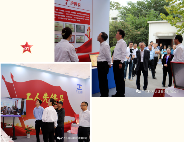活动期间山东省住房和城乡建设厅副厅长王润晓、山东省住建厅工程质量安全监管处处长李永刚、济南市住房和城乡建设局副局长李军莅临广信检测认证集团展区,详细了解集团公司党建工作、工程质量检测技术能力、人才队伍建设等,参观了展区陈列的拥有自主知识产权的质量检测仪器模型等。
